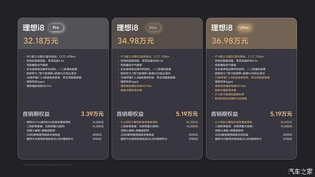 7月29日理想i8正式上市,新车共计推出3款车型,售价32.18-36.98万元。李想将i8的特点归结为具有SUV的通过性、MPV的空间舒适性、轿车的驾驶感。这是理想首款纯电SUV,定位中大型SUV,家庭用户依然是目标用户群体,延续“冰箱、彩电、大沙发”的实用理念,采用三排6座布局,纯电续航720km,5C充电10分钟续航500km,能耗仅14.8kWh,配备双腔空气悬架,理想同学智能体,搭载下一代自动驾驶架构MindVLA,并将于8月20日开启交付。