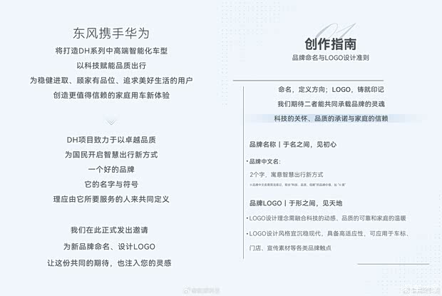 欢迎转载,请注明出处:全球电动车网 » 东风/华为联合打造全新品牌 东风DH项目中文名+LOGO征集活动
