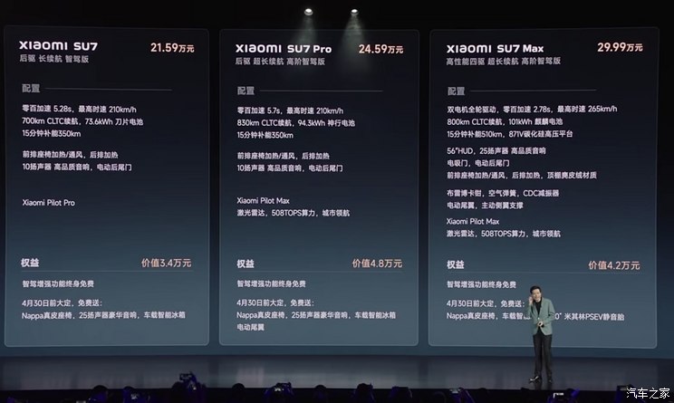 [本站 新车上市] 3月28日,小米汽车旗下中大型车――小米SU7正式上市,新车共计推出5款车型,...