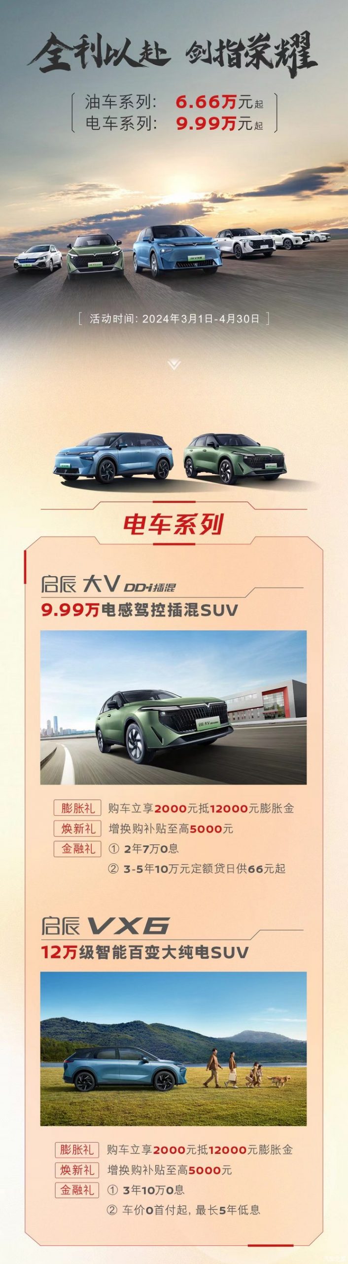 [本站 资讯] 近日,启辰官方推出官方优惠政策,旗下燃油车6.66万起,新能源车9.99万起,优惠时间为20...