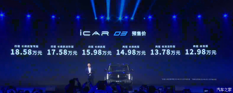 [本站 资讯] 日前,我们从官方获悉,奇瑞iCAR 03将于今日(2月28日)正式上市,目前新车处...