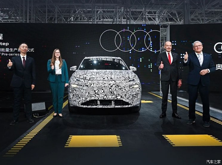 [本站 资讯] 1月26日,奥迪一汽新能源汽车有限公司在总装车间庆祝首台奥迪Q6 e-tron预批...