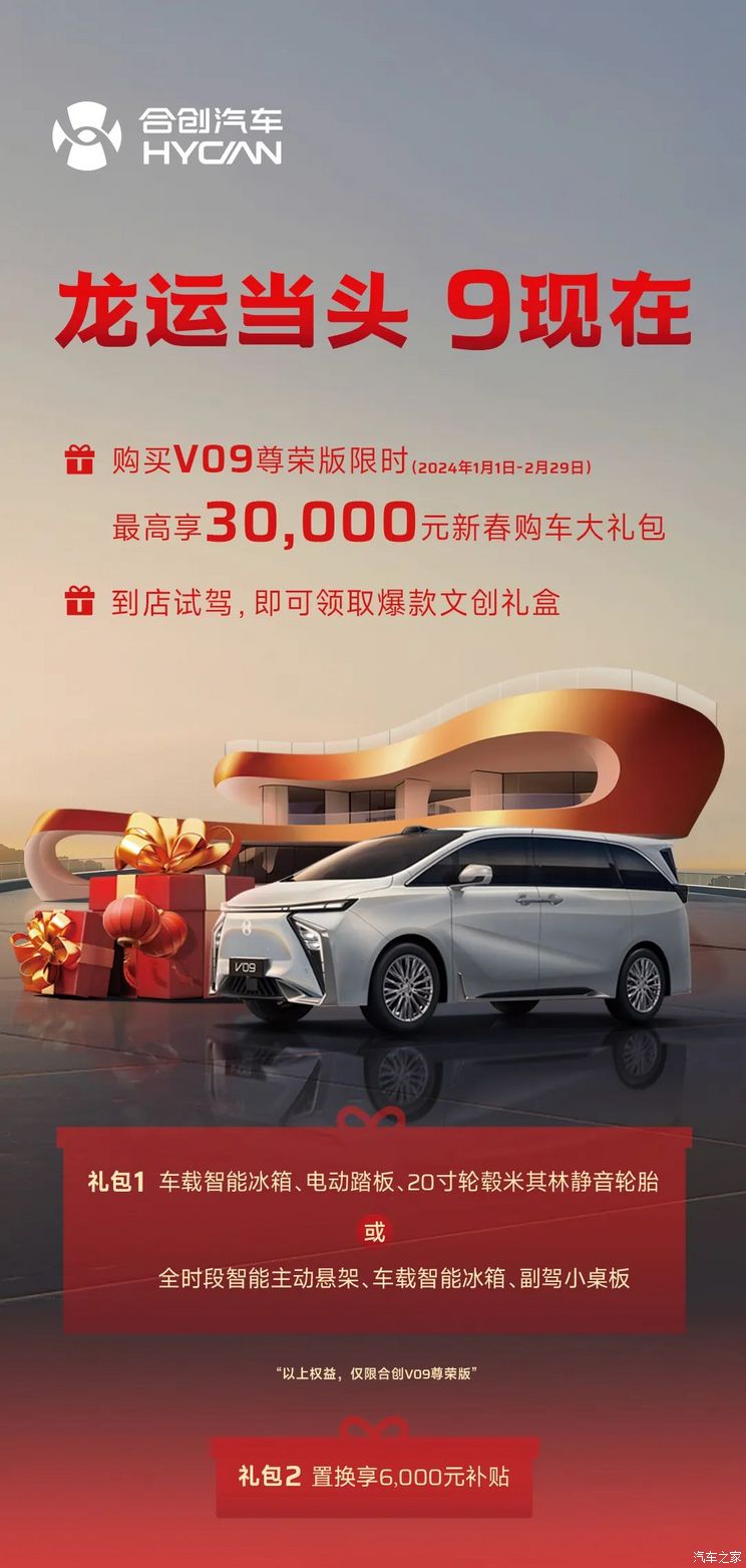 [本站 资讯] 日前,我们从合创官方获悉,2024年1月1日-2月29日期间,购买合创V09尊荣版限时最高享...