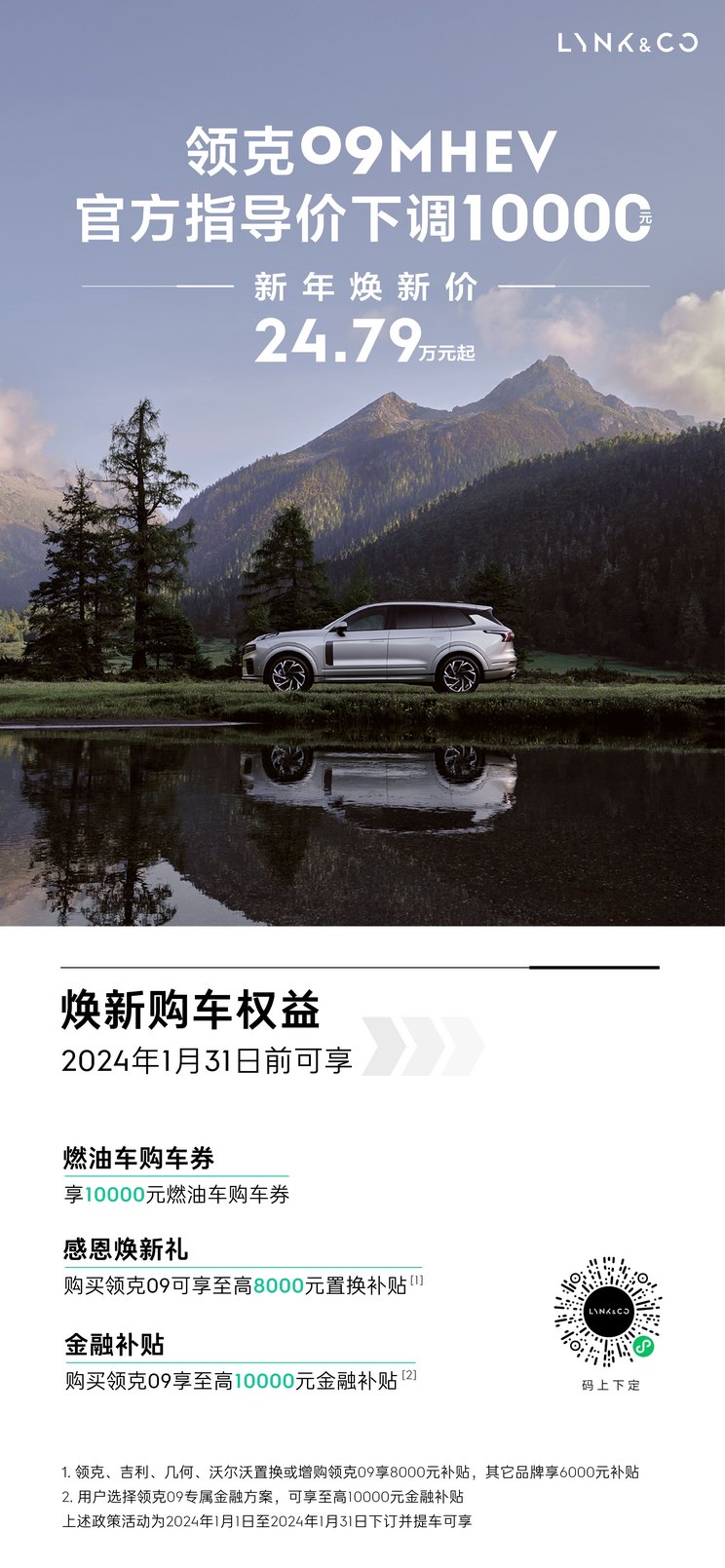 [本站 车型调价]2024年1月1日,领克09(参数|询价|全景看车)迎来降价,全系车型官方指导价下调1万元,...