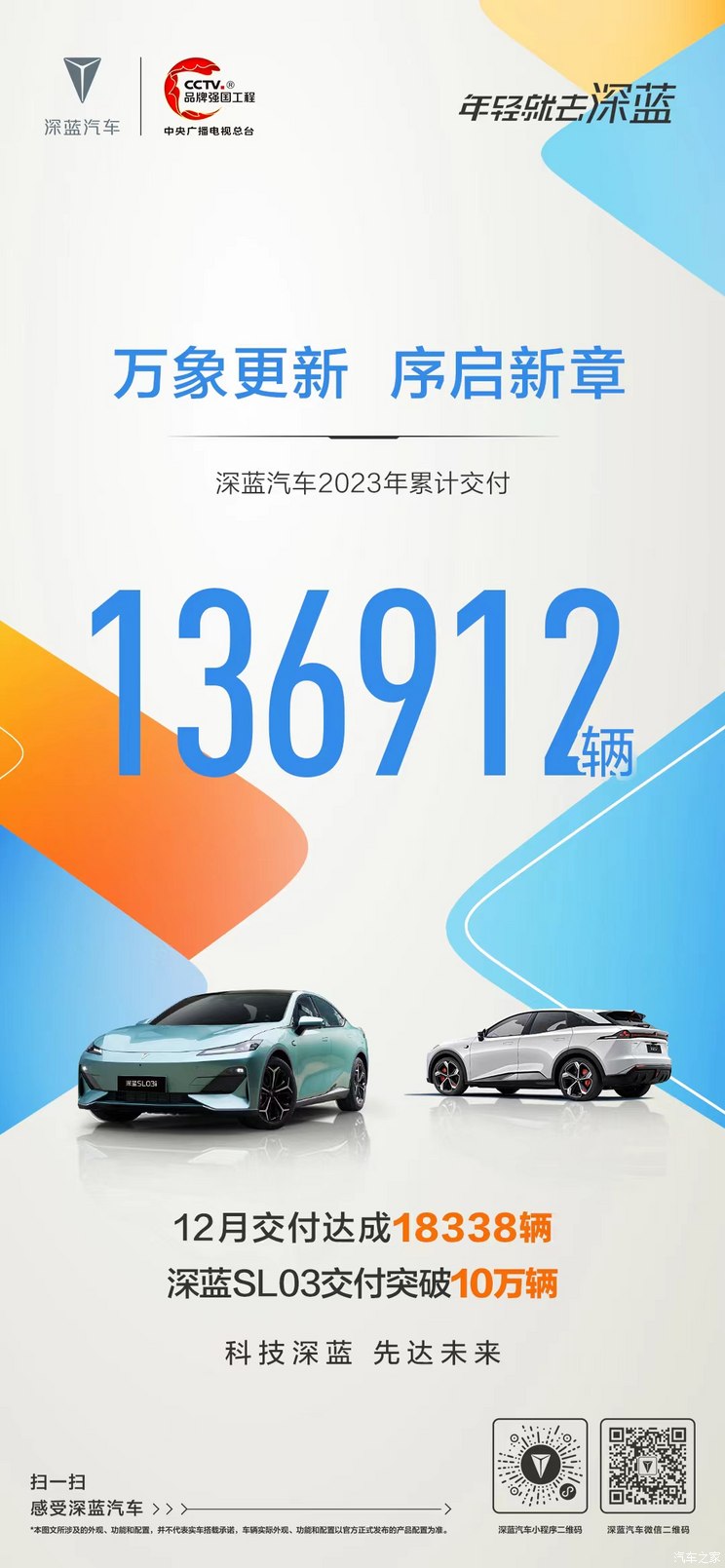 [本站 资讯] 2024年1月1日,我们从深蓝汽车官方了解到,2023年累计交付136912辆,其...
