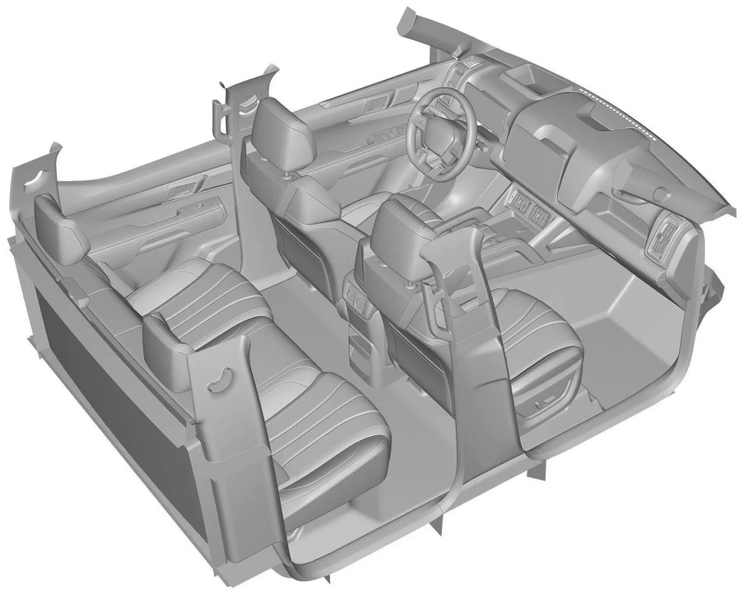 [本站 资讯] 日前,我们获取到了一组比亚迪皮卡车型的内饰专利图,整体来看,新车内部拥有相当硬派的...
