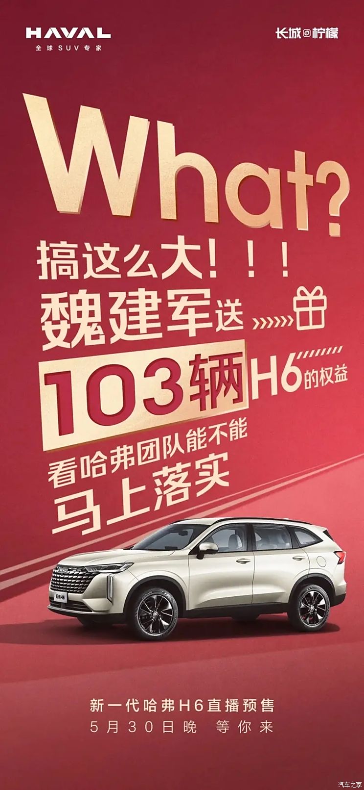 [本站 资讯] 5月29日,我们从官方了解到,哈弗旗下紧凑型SUV――全新一代哈弗H6将于5月30...