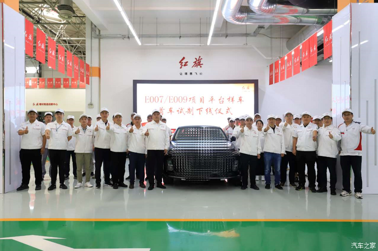 [本站 资讯]日前,我们从红旗官方获悉,红旗E007和E009首台平台样车下线,试制团队从8月15日开始装配,...