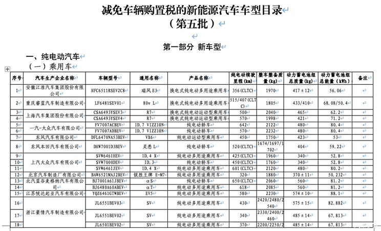 [本站 资讯]日前,工信部公示了第五批减免车辆购置税的新能源汽车车型目录,和第六十一批享受车船税减免优惠的节约...
