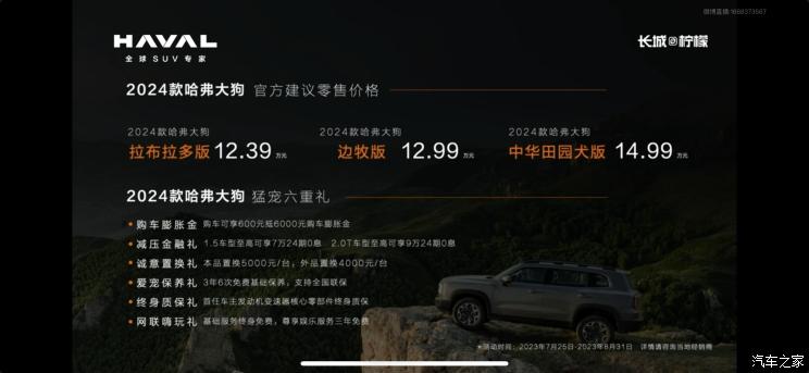 [本站 新车上市] 7月25日,新款哈弗大狗正式上市,新车共推出3款车型,售价区间为12.39-1...
