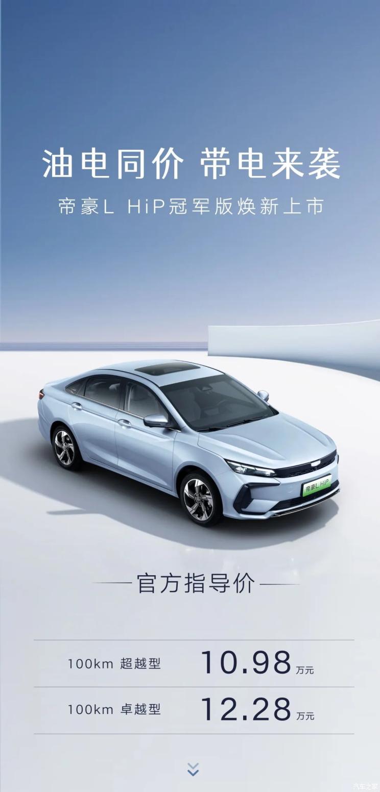 [本站 新车上市]7月13日,吉利帝豪L HiP冠军版正式上市,新车共推出2款车型,售价分别为10.98万和1...