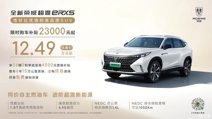 [本站 资讯] 日前,荣威eRX5推出7月限时优惠,即日起至2023年7月31日,12.49万元起即可入手,...