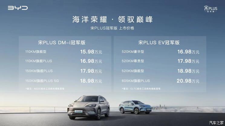 [本站 新车上市] 在6月19日,比亚迪官方表示旗下紧凑型SUV――宋PLUS冠军版正式上市,其中...