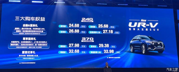 [本站 新车上市] 6月19日,新款东风本田UR-V正式上市,新车共计推出8款车型,售价区间为24.68-3...