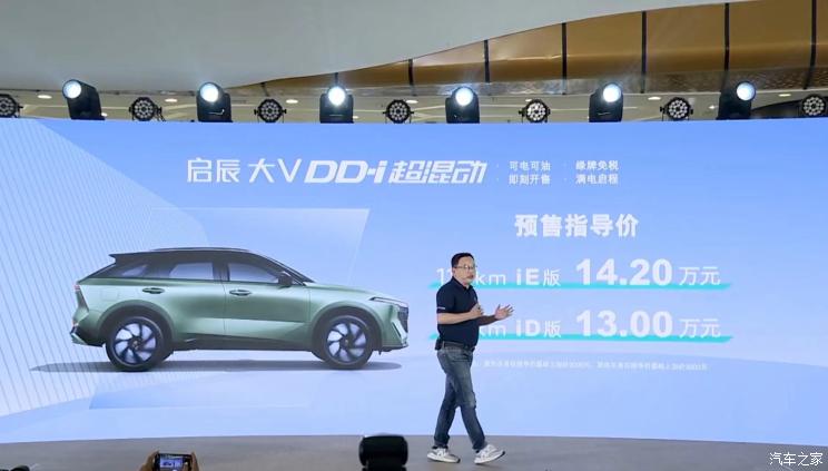 [本站 资讯]6月3日,启辰大V DD-i超混动正式开启预售,新车共推出2款车型,预售价区间为13.00-14...