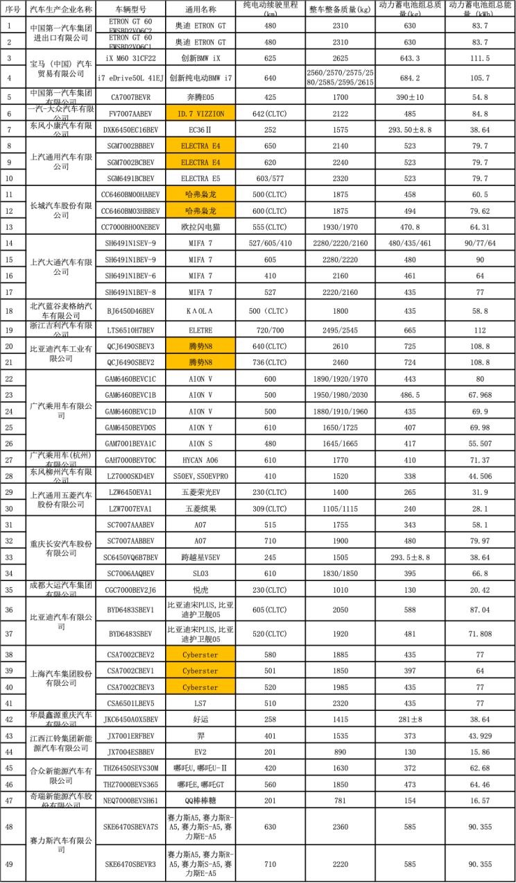 [本站 资讯] 近日,工信部发布了《免征车辆购置税的新能源汽车车型目录》(第六十五批)。本次共有49纯电车、...