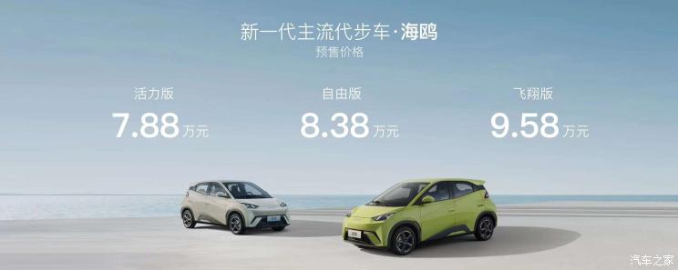 [本站 资讯] 比亚迪海鸥将在今天下午(4月26日)正式上市。新车的预售价在上海车展期间公布,为7...