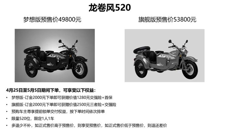 [本站 资讯] 2023年4月25日鑫源发布全新边三轮摩托车(俗称挎子)龙卷风520预售价格,新...