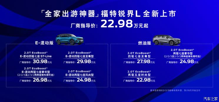 [本站 新车上市]在2023上海车展上,长安福特全新一代锐界L正式上市,价格区间为22.98-30.98万元。新车将会推...