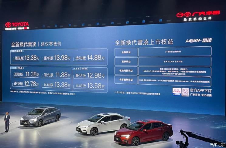 [本站 新车上市] 3月23日,我们从广汽丰田官方获悉,新款雷凌家族正式上市,共推出6款纯汽油版车...