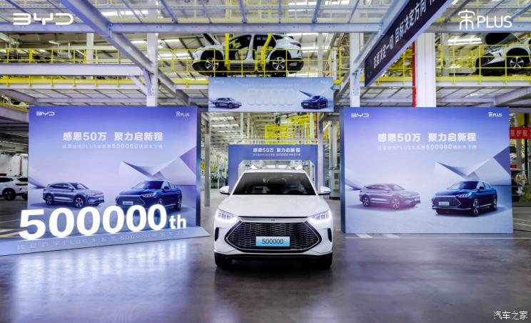 [本站 资讯]近日,在比亚迪汽车西安工厂内,第50万辆比亚迪宋PLUS正式下线。自2021年3月上市以来,比亚...