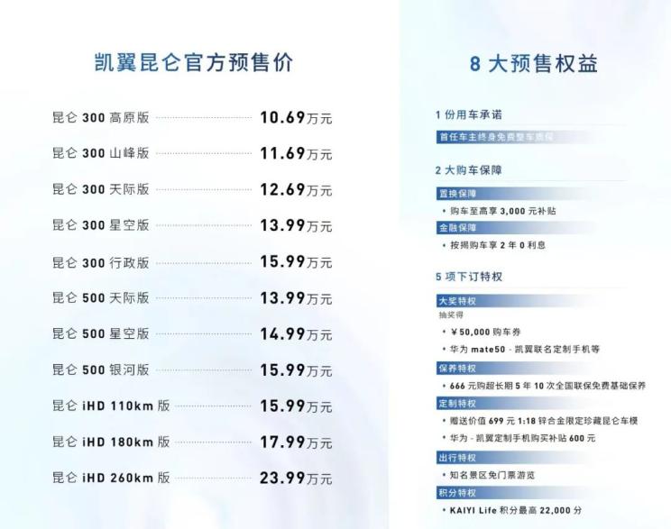 [本站 资讯] 日前,我们从官方获悉,凯翼昆仑将于3月20日正式上市。该车已于去年开启预售,预售价为10.69...