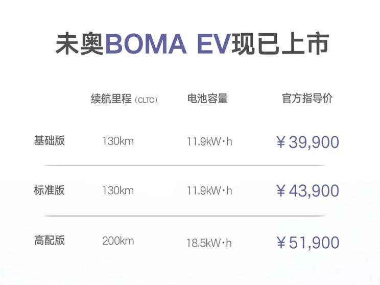 [本站 新车上市] 2月26日,未奥汽车旗下微型电动车――未奥BOMA正式上市,共推出3款配置,售价...