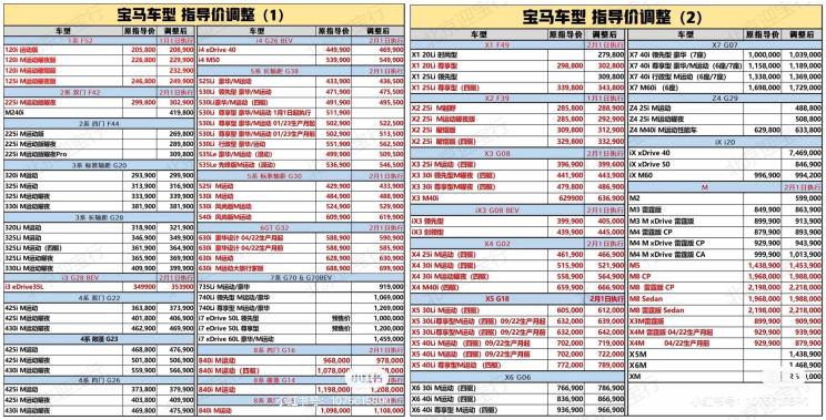 [本站 车型调价] 日前,我们获悉宝马2月1日起多款新车售价上涨,涉及多款车型,包含宝马2系、宝马i3、宝马...