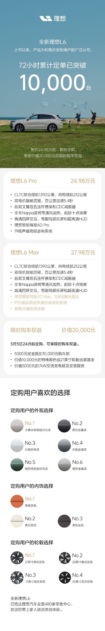 小象灰最热门 理想L6 72小时大定破万