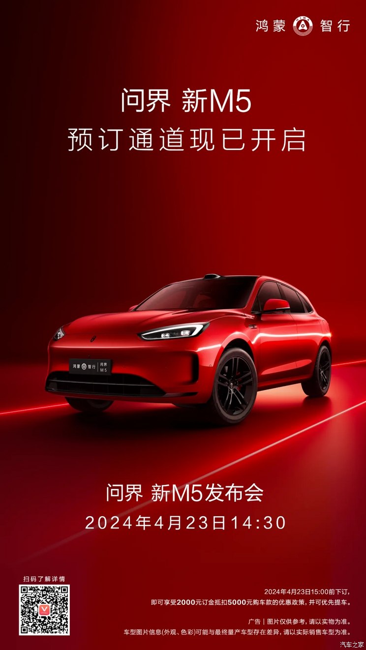[本站 资讯] 4月17日,我们从AITO汽车官方了解到,新款问界M5预订通道现已开启。据官方表示...
