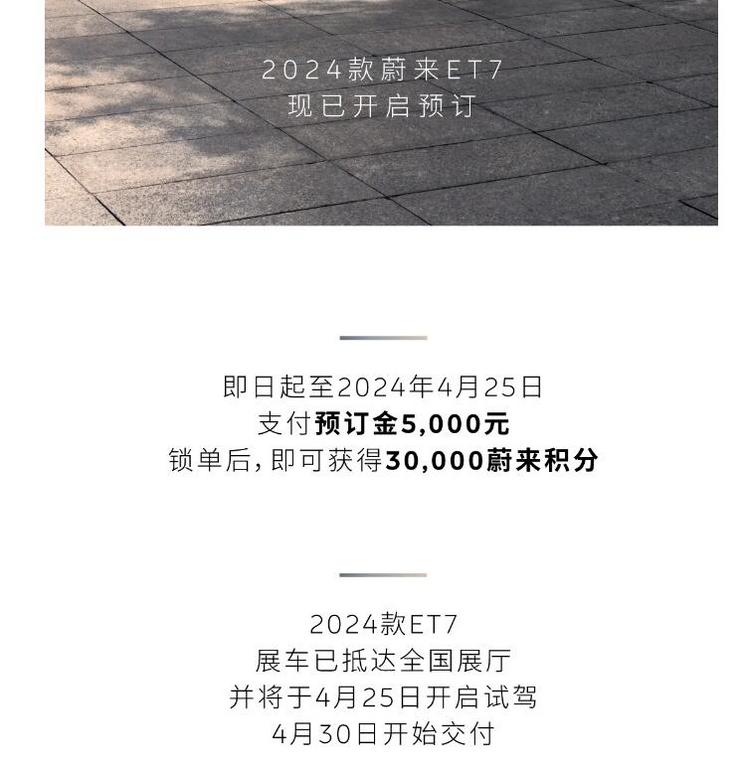 [本站 资讯] 4月16日,蔚来汽车官方宣布,2024款蔚来ET7车型开启预定,新车将于4月25日北京车展期...