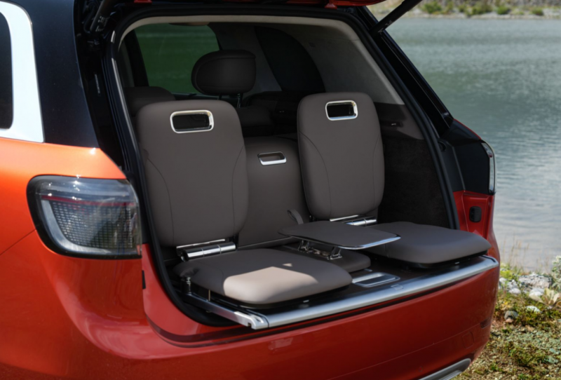 今年,问界M9新增了大五座车型,车内总乘用空间达3500mm,二排腿部空间可拓展至1985mm,二排座椅靠背最大倾斜角度43°,还有腿托、头枕、腰靠,即使长途久坐也不累。大五座车型的后备箱有“钓鱼座”、香槟柜和小桌板等丰富的拓展配件,闲暇时去户外露营、垂钓都更加方便。