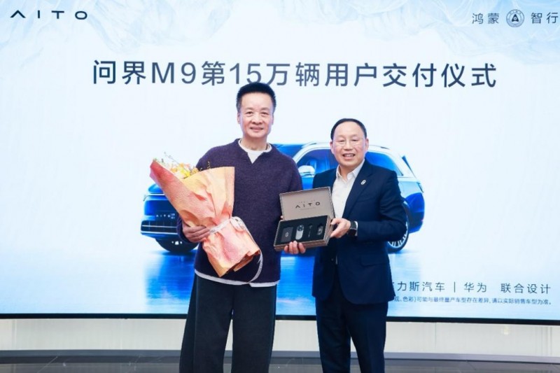 另一项高分,是豪华车市场对问界的喜爱。国民SUV问界新M7系列年度累计交付新车19.7万辆,荣获2024年新势力车型年度销冠,再创中国新能源豪华品牌新纪录;全景智慧旗舰SUV问界M9发布12个月累计大定突破20万辆,连续9个月蝉联中国市场50万以上月度销冠,并且累计交付也突破15万辆。近日,著名男高音歌唱家阎维文作为第15万辆问界M9车主,从赛力斯集团董事长(创始人)张兴海手中接过新车钥匙。