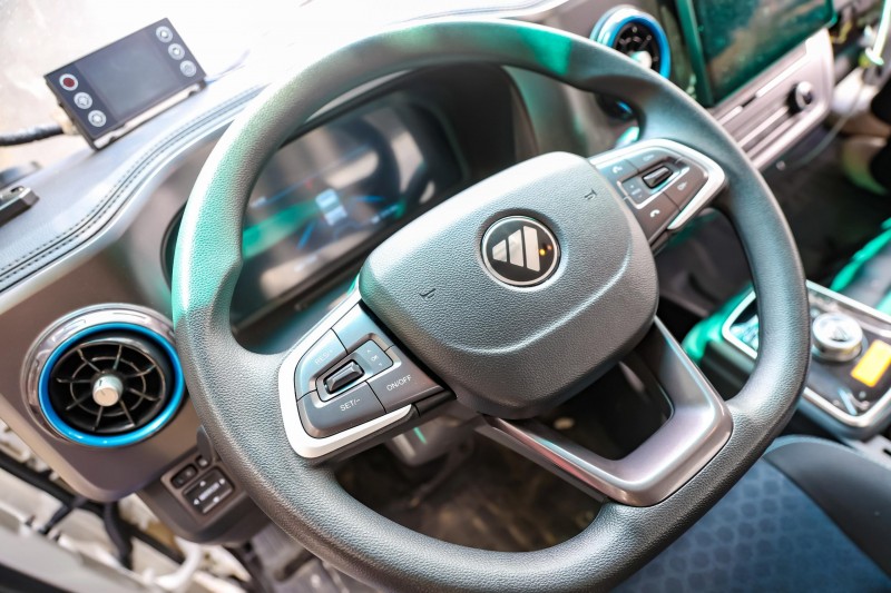基于对用户需求和诉求的洞察,欧马可坚持从实用出发、从安全出发,持续优化和提升驾驶室配置,打造智驾座舱。欧马可智蓝 ES1·165配备符合人体工学的主驾座椅,背部、腰部和腿部两侧提供有力支撑,减缓驾驶疲劳。操控方面,欧马可智蓝ES1•165纯电轻卡配备无钥匙进入、多功能方向盘、一键启动等功能,为用户提供智慧便捷的操控体验。智能车机部分,欧马可智蓝ES1•165支持娱乐影音、货车导航,并带有360环视和倒车影像等功能,在为用户提供智驾体验的同时,让冷链运输更安全高效。