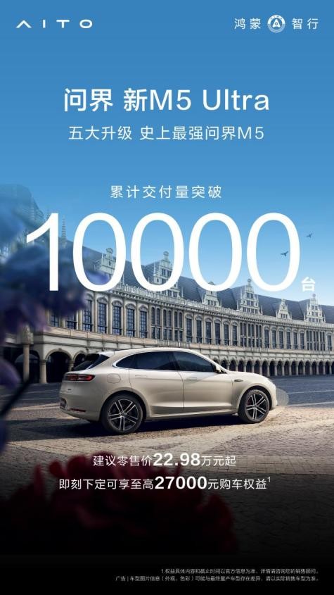 问界新M5 Ultra自上市以来,凭借对都市年轻消费群体需求的深刻理解,以及高度契合年轻消费群体的产品力,成功实现销量突围,5月单月交付就达到近五千台,25年累计交付破万台。