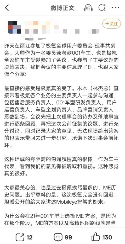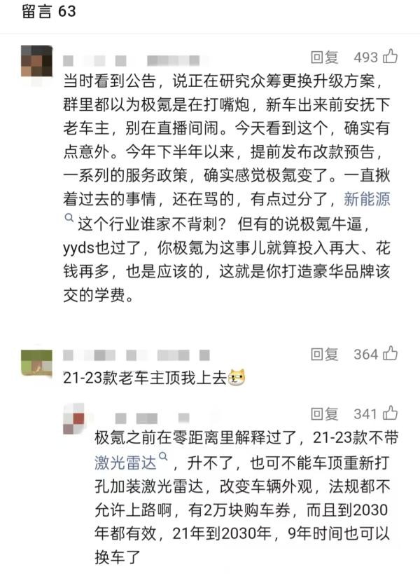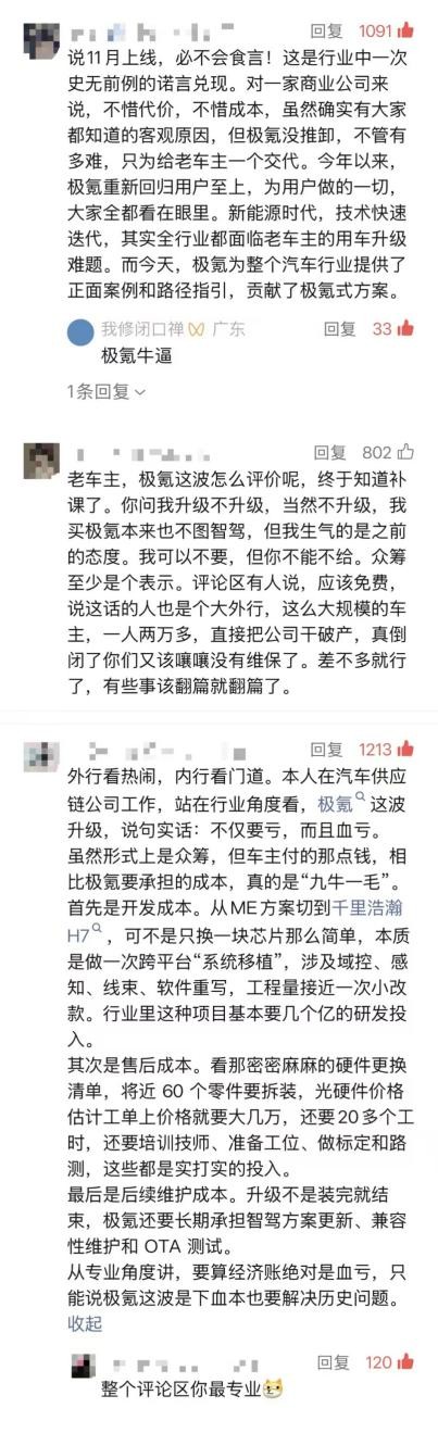 “之前总吐槽极氪,跟行业很多品牌一样只管卖新车,忘记老用户,但这次极氪愿意为老车主升级辅助驾驶系统,不管众筹成不成功,态度确实是到位了。”一位极氪001老车主评论道。类似的声音还有很多,不少用户认为,极氪在这几年新能源汽车快速迭代的过程中,虽然走过弯路,但今年开始明显“听劝”了,正在变得越来越好。