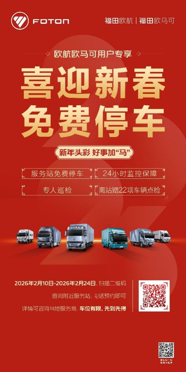 真正的高端,是想用户之所想,急用户之所急。对卡友来说,春节常常是“想回家”和“还得跑”来回拉扯的关口,欧航欧马可以“免费停车”安放牵挂,以“春节不打烊”守护奔波,直指“停车难”“维保难”的实际痛点,切实践行其“以人为本”的服务理念。未来,欧航欧马可将始终坚持与用户同行,瞄准用户真实需求,不仅提供高可靠、高能效的运输装备,更将服务细致入微并持续创新,不断拓展高端商用车的价值边界,让运输更高效、更舒心,让服务更温馨、更贴心。