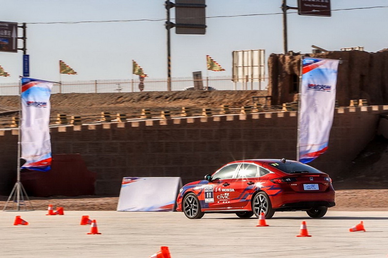 此外,为了测试参赛车辆在极端高温环境中的动态行驶性能,主办方还设置了包含高速盲弯、发卡弯、组合弯、直角弯在内的全赛道比拼。在极热赛道上,驾驶员快速且激烈的驾驶并未让第十一代思域HATCHBACK e:HEV的车身产生大幅度倾斜,车身姿态依旧稳健,良好的轮胎抓地力、干脆利落的车辆循迹能力都验证了其扎实的产品品质。同时其所搭载的第四代i-MMD双电机混合动力系统拥有全场景电驱的澎湃动力特性,驱动电机最大扭矩315N·m,哪怕身处极端高温及复杂路况环境中,依然拥有敏捷的动态性能。