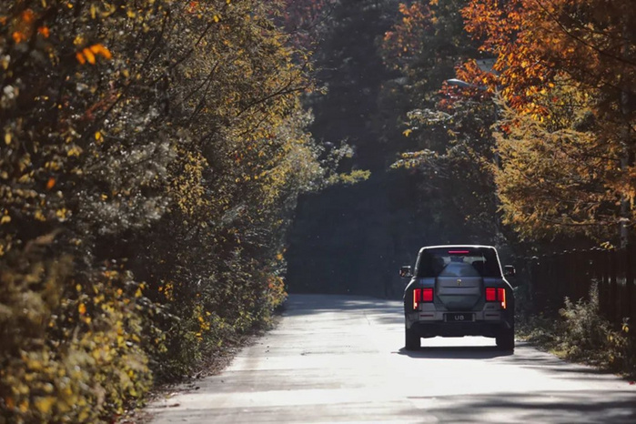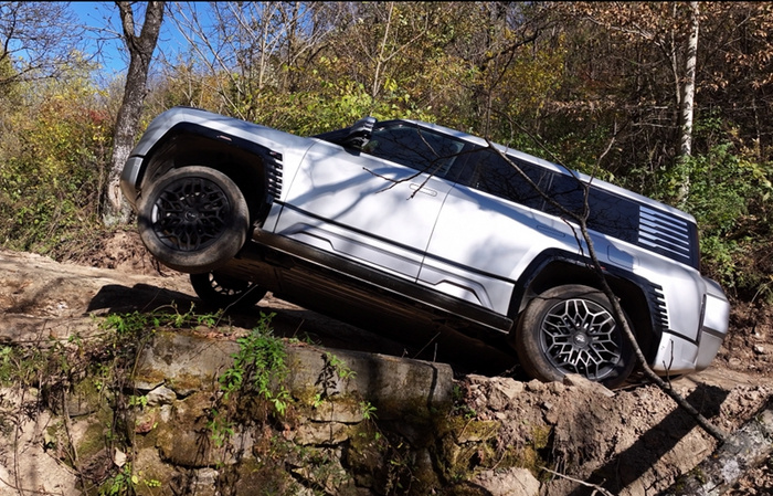 这件事不难,因为其他品牌也做到过。难点在高附着路面上,不单纯靠动力凹出一个圆,而是在尽量减少轮胎损耗的情况下完成掉头。这就是为什么哪怕在广告这个展示肌肉的场景中,Rivian R1T也只敢在砂石路面这种低附着的地方演示的原因。