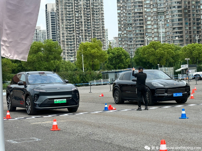 在本次的试驾中,我们针对ES8底盘进行了非常全面的场地+对比测试+道路试驾。在现场,除了新一代ES8外,还有对比车型保时捷卡宴以及宝马X7。